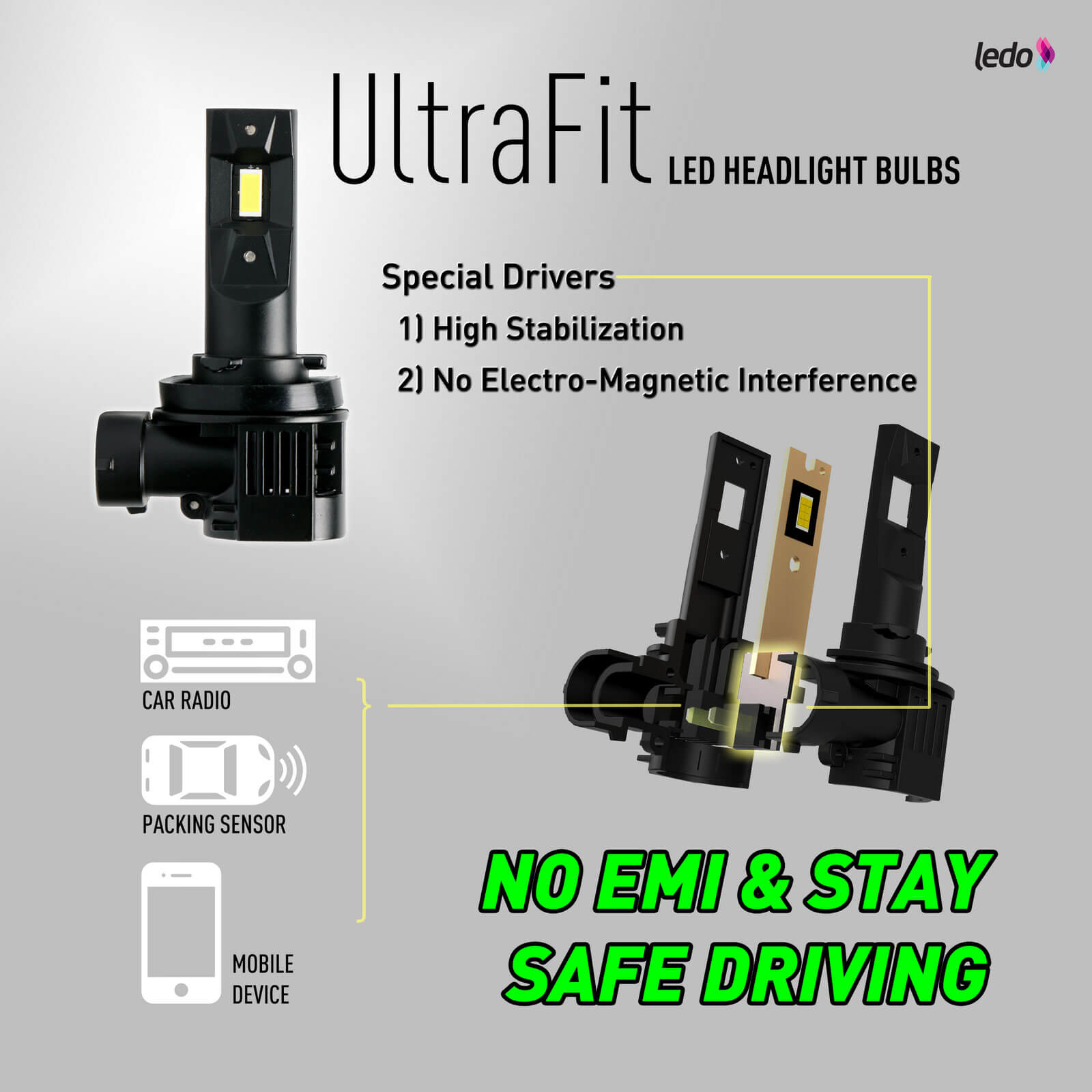 According to ECE standard, car headlight bulb should not have electro-magnetic interference to car radio, parking sensor, Ultra-fit is designed to comply to ECE standard and have no ESI, keeping you safe driving.