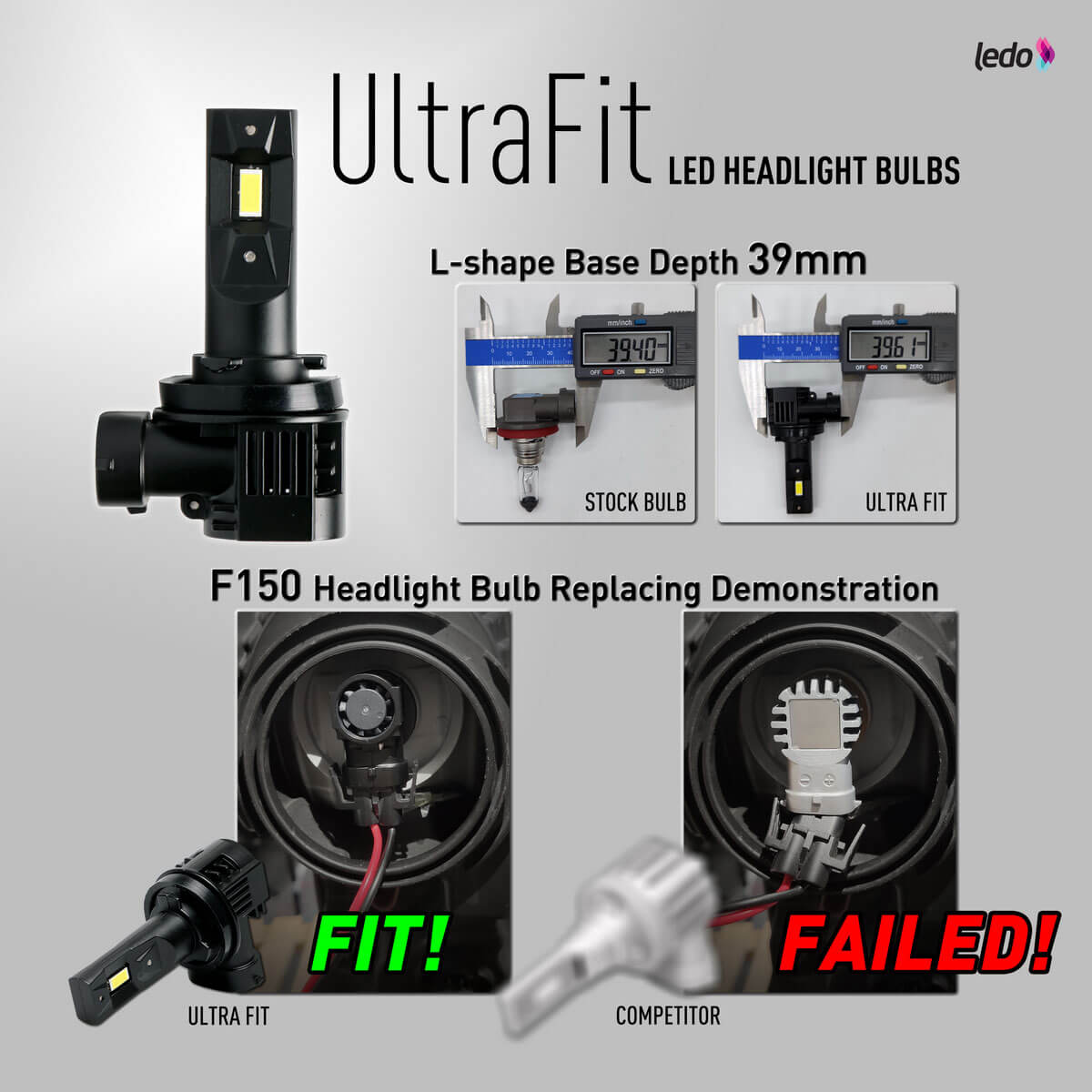 The length of L shape plug is shorten to 3.961cm, close to the 3.940cm L shape length of halogen bulb . The new custom shorten plug help to fix some compact headlamp installing problem, similar to Ford F150.